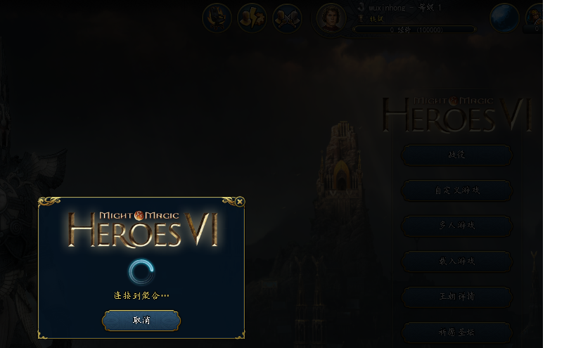 用朋友的UPLAY账号进入游戏,能够很快地连接进聚合,进入王朝模式,用自己的账号就一直是上图的状态.