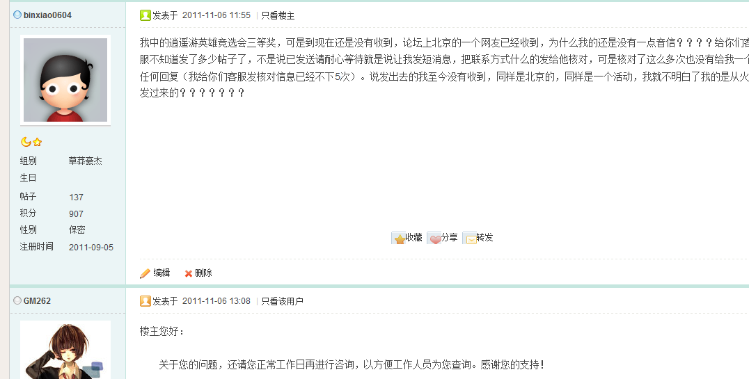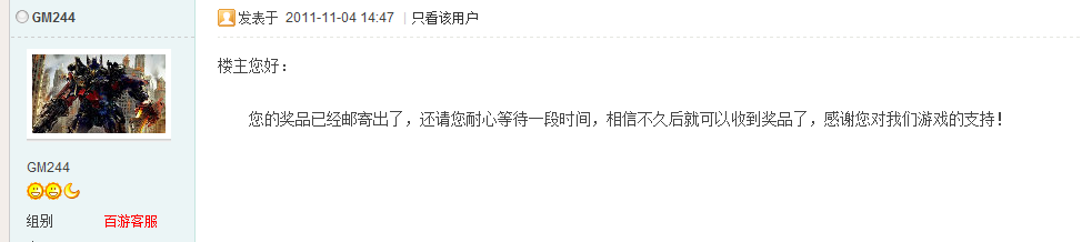 您的奖品正在邮寄当中还请您耐心等待。感谢您对《仙剑奇侠传五》的支持!