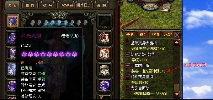 看下面的图 我把系统送的那个九星的装上去了,但是任务一直显示没完成 难道让我把另一个养到九星啊TUT