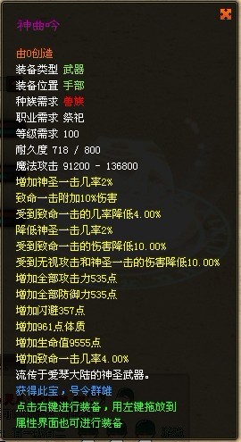 NND,祭祀拿了这把神器后一次加血就有10W+,站那里叫你杀你也杀不死,呵呵。这是事实不是蒙人的。