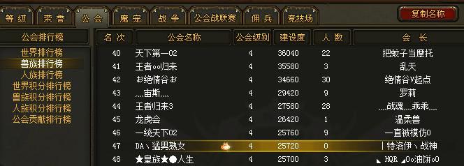 为什么提这个问题的人少了?因为就算人族强大,兽族也能整出一个公会来,拿不了第一,也能第二,所以都保持沉默!!!