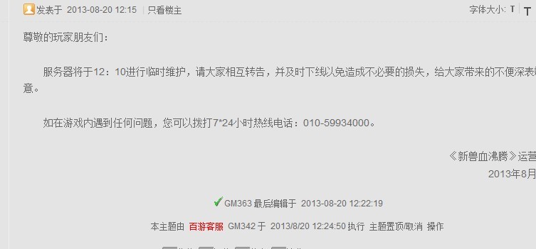 12点回来 一直没看到游戏里说要维护 难道真要24小时开着论坛刷新?再次鄙视