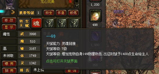 不是,假设我现在攻击是1W整,放出2个一转宠物来,攻击还是1W 一点变化也没有。宠物的灵魂连接没用了吗?没给主体增加属性