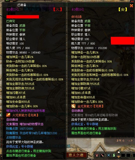请看附件,第一个图为人族游侠转族之后神的攻击属性,第二个为兽族猎人初始神器的攻击属性!