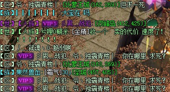 本人,觉得这样的玩家 就是欠抽啊,于是问口水王在什么地方!?我们经典电信三区没什么兽兽还在玩了,他这么狂,我就想去杀了他让他知道吹牛的下场,让他欢乐的死在我的刀下