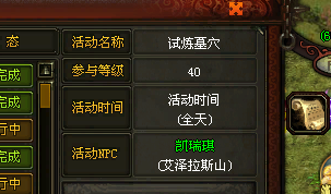 放火任务是点燃烧 瓶吧,我点了就提示“传送中”。如果艾泽拉斯山是61级才开放,那么40级的试炼墓穴活动怎么做?“驯服摩羯方法'的任务是打摩羯猎人吧,打N次了,就是完成不了。