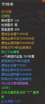 七夕礼包送的坐骑紫鲤兽属性是什么样子的??