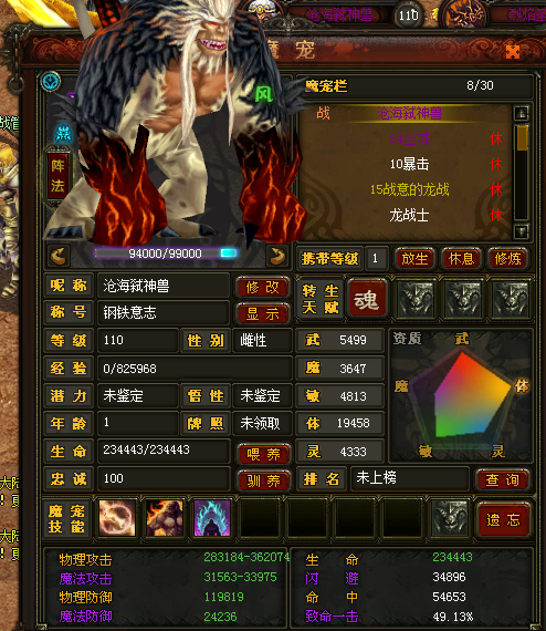 斑斑,我的沧海合体属性比烈焰居然低了3W,但沧海的生命值是23万,烈焰是10万,我沧海还学了顽强,具体数据如图。什么原因造成了这种错误情况请求斑斑帮助!!!万分感谢!!!