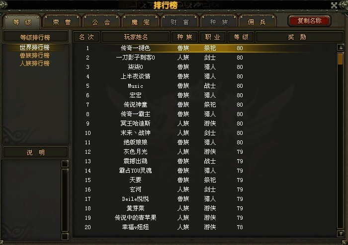 我们这区兽族全部是靠RMB顶着的..人族的人数是兽族的一倍