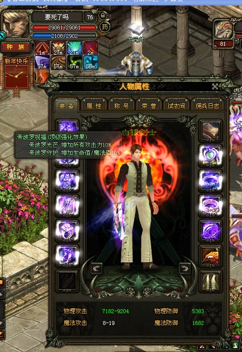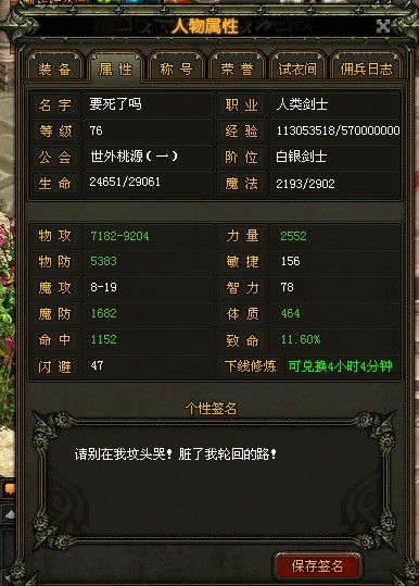 你把 垃圾 剑 呢 我草 换上你的60套加70戒指啊 9500再哪里? 要不要 叫 78游侠帮你加多点攻击