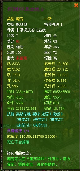 也是我见过的最好的魔攻宝宝了,魔攻宝宝是最难养的大家都知道,由衷的赞一下,就是花点钱弄个忠诚,弄个超越神,就相当完美了