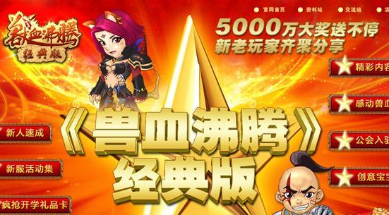 三、《兽血沸腾》经典版 公测活动千万大奖豪放送 《兽血沸腾》经典版即将于9月3日豪情公测!公测同时将推出系列活动,届时,价值高达千万元的4种不同礼品卡将限时发放给新老玩家,礼品卡内含种类多样数量众多的游戏内珍贵道具,更有截图大赛实物大奖全方位发放,只要您参与,即可轻易领取千万大奖好礼!