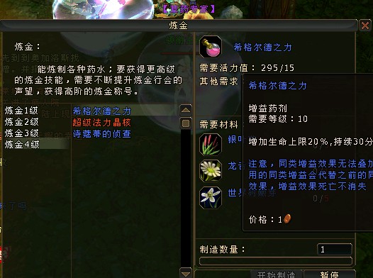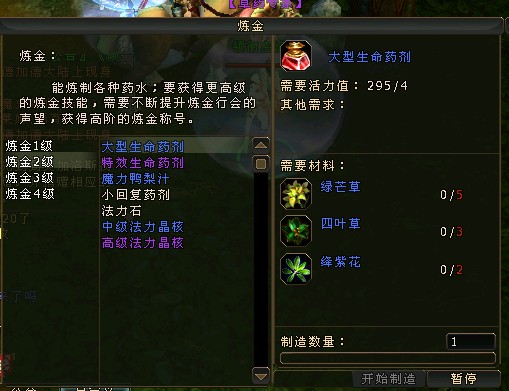 4级炼金生产表 申精