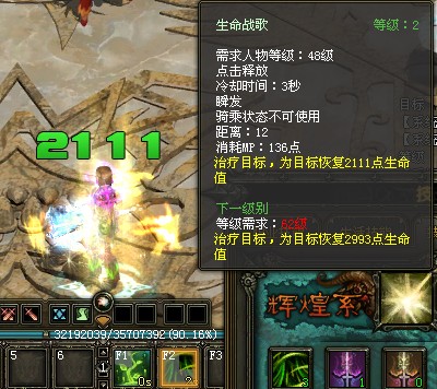 55级祭司 生命战歌2级 治疗效果 2111 天赋点出 强化生命战歌3点(总治疗提高相当于40%魔法攻击力) 无效果 。 治疗效果仍然是 2111