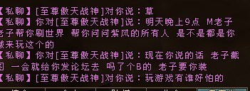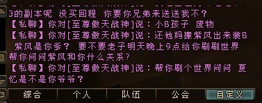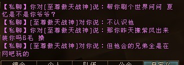然后出现了下面的对话,不知道 电信一区紫风行会里的RMB战士们 有什么想法