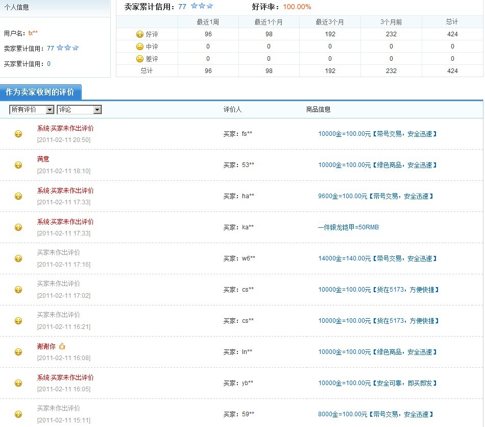 你们看看吧 间隔20分钟半个小时就能弄到1万金币卖掉 这不是盗号 是什么呢?