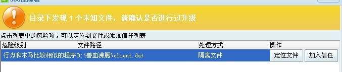 这个文件是什么!360保险箱查是木马!杀了游戏又启动不了!请解释一下!!