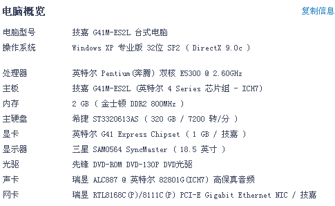 CPU:Intel Core2 Duo 2.3Ghz或AMD同等性能芯片及以上