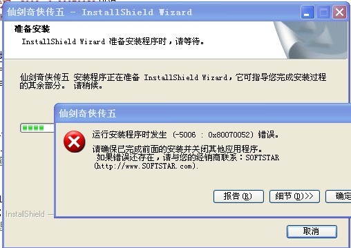 急,仙剑五安装为何出现错误错误-5006 : 0x80070057
