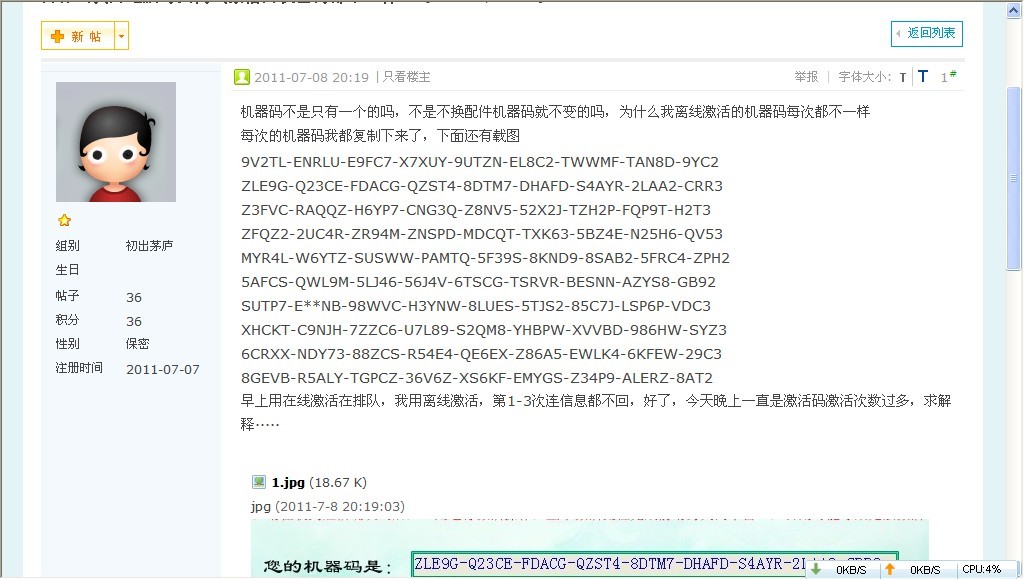 机器码不是只有一个的吗,不是不换配件机器码就不变的吗,为什么我离线激活的机器码每次都不一样