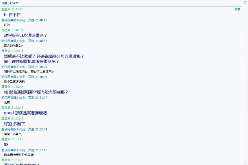 另外对于客服的不专业表示严重BS!附图为证(图中客服是游侠的):