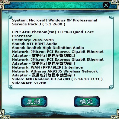 操作系统 Windows XP 专业版 32位 SP3 ( DirectX 9.0c )