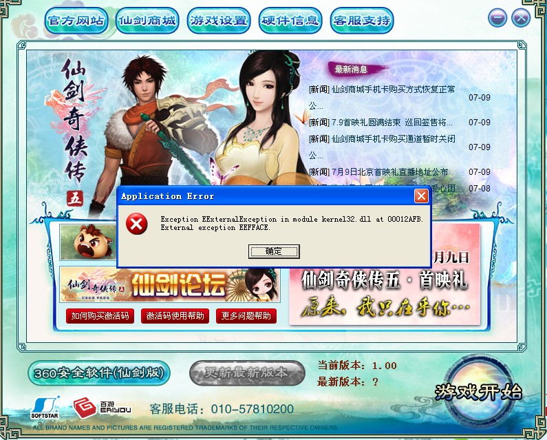 运行桌面上的仙五图标后,出现LAUNCH的界面,但是同时弹出错误框: