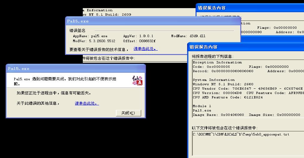 游戏配置都做了最低设置,特效也关闭了,但进入游戏出现3个公司的LOGO后就报错了。求解!!!我机器IBM T43配置: