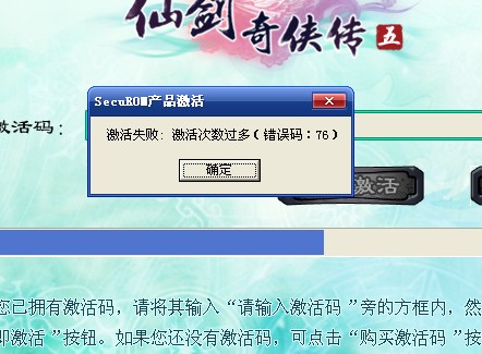 出现此提示是由于您的激活码输入错误,如果您是在线激活的话,那么请您留意输入“-”符号,否则无法输入正确。