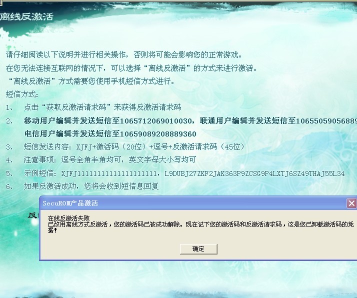如果您在线反激活失败,是会自动跳转离线反激活页面的,还请您了解。请您核对下您输入的激活码是否正确,是否严格按照格式要求输入,同时请您区分下激活码内“U”和“V”的区别。希望我的回复能够帮助到您,感谢您对《仙剑奇侠传五》的支持。