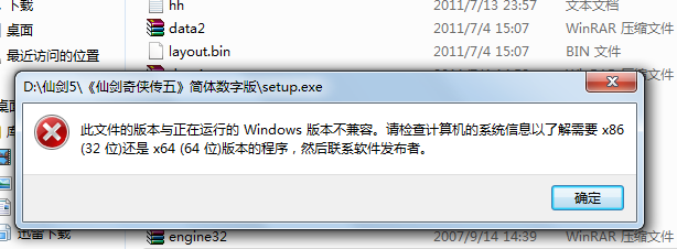 提示安装不兼容 w7系统 64位的不可以么??必须要32位的??安装游戏问题 提示版本不对!请gm 及时回答下 谢谢