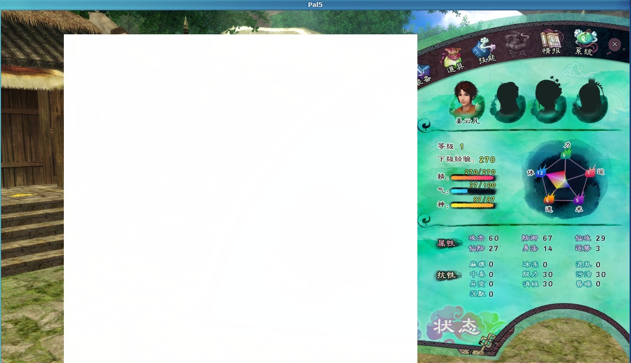但现在进行游戏时发现,进菜单的状态选项时,有一大片空白的框框,如下截图,请问是怎么回事?
