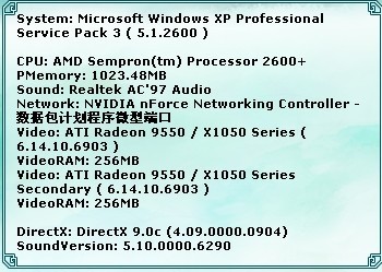 按照惯例,我先将本游戏的所有配置告知您一下: