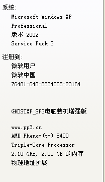 CPU:Intel Core2 Duo 2.3Ghz或AMD同等性能芯片及以上