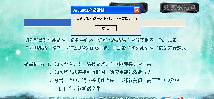 今天上午从电脑城买了个仙剑5的正版碟,,在激活激活码的时候出现了激活失败:激活次数过多!求解啊!!是不是我的激活码没有用了???