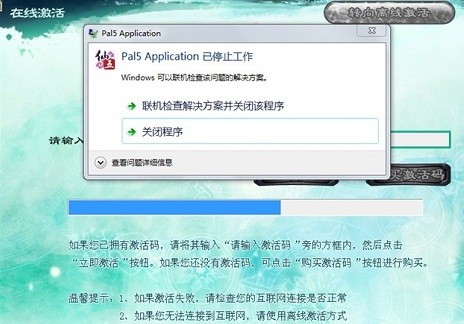 此类问题往往与您电脑的软硬件环境兼容性有关,请您尝试在备份驱动情况下更新计算机中显卡以及directX驱动版本,运行游戏的同时关闭其他非必要的应用程序。在此,我也建议您使用离线激活进行游戏的激活。关于离线激活的操作与流程还请您参考:http://pal5.baiyou100.com/help/jh.html。感谢您对我们的支持!