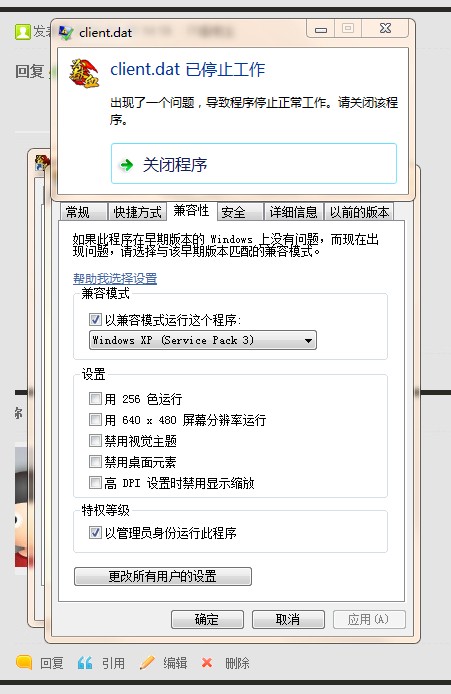 你用管理员模式运行下,看你发的图片像是WIN7的界面,用兼容XP的运行下先。