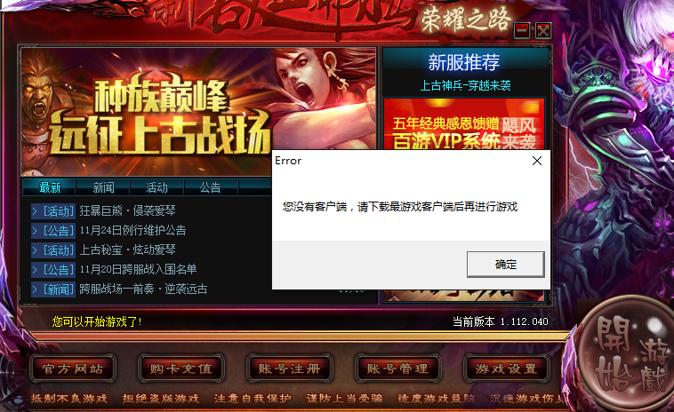 装好后又更新的补丁,点击开始游戏,提示:您未安装客户端......我都无语了